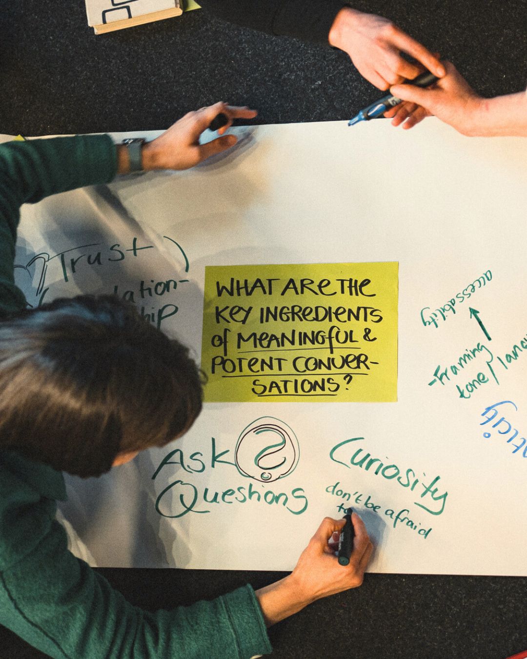 "Im Kern von Art of Hosting steht die Annahme, dass Gruppen von Menschen, die sich um Fragen austauschen, die sie bewegen, gemeinsam schlauer sind als Einzelne."